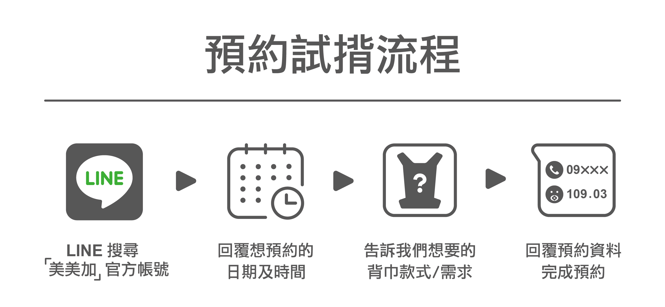 在預約時段中,美美加會把你約定的時間和場地空下來,實際到達現場後依需求、認知與身形,協助你挑選適合的背巾進行試揹。