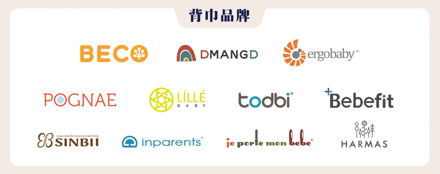 現場有十大品牌,超過三十款背巾。每款都可以指導你如何單人完成操作。若有合適的款式,現場有現貨可以直接購買。
