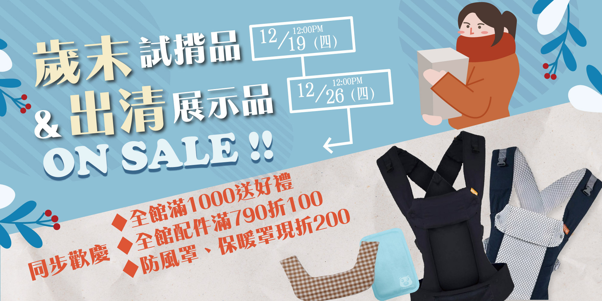 ● 商品:試揹品、展示品、瑕疵品背巾與配件福利品2折起 & 全館商品優惠